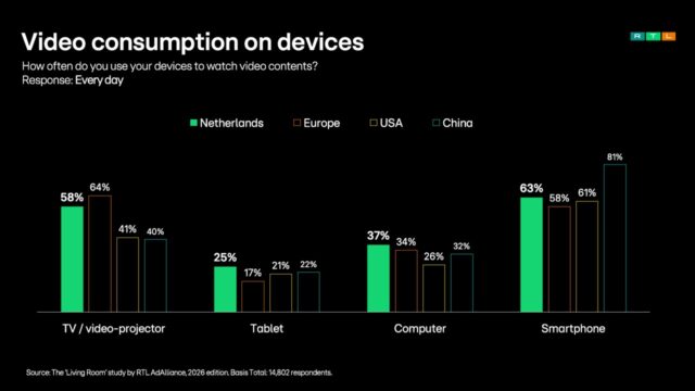 Natuurlijk is het medialandschap de afgelopen jaren getransformeerd. We zien dat videoconsumptie zich organisch verspreidt over de dag en over verschillende apparaten. Een korte nieuwsvideo in de trein op de smartphone, of een YouTube-vlog op een tablet voor het slapengaan.