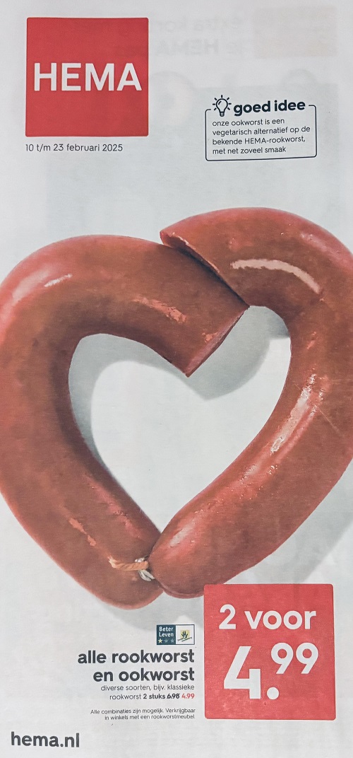 Hema maakte namelijk gebruik van hun (r)ookworst. Deze wordt al vaker gebruikt voor verschillende inhakers. Ook rond Valentijnsdag mocht deze niet ontbreken.